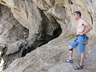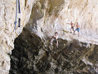 El sabado en Portinho, en el sector Cocodrilos (único sitio a la sombra y donde se podía escalar). Allí estuvimos las ratas, con el amigo Jota y sus compinches Panchi y Emilio, y con los cacereños, Pablo Sanguino y Alberto.